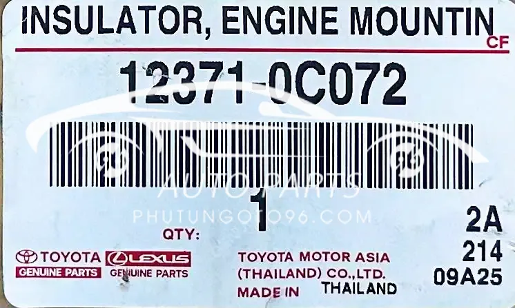 Chân hộp số mã 12371-0C072 / 123710C072 được thiết kế theo tiêu chuẩn Toyota, sử dụng cao su chịu lực kết hợp kim loại, giúp hấp thụ rung động hiệu quả và đảm bảo độ bền cao.