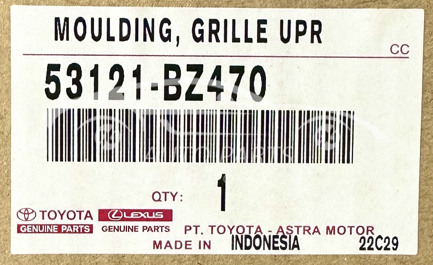 Nẹp Trên Ca Lăng Rush 53121-BZ470 (53121BZ470) – Phụ Tùng Chính Hãng Cho Xe Toyota Rush
