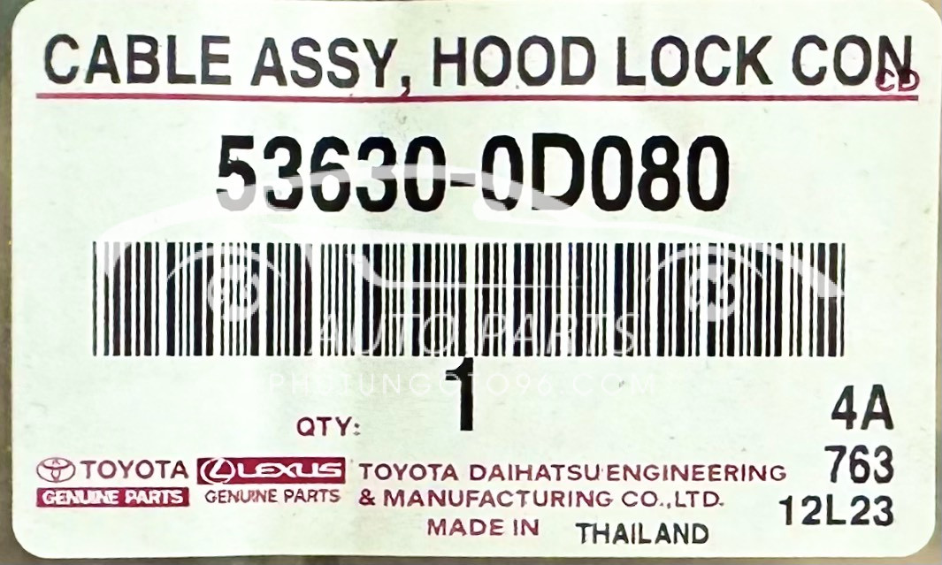 Sản phẩm Cáp mở nắp ca bô Vios 2008-2013 chính hãng được cung cấp từ Phutungoto96 với chất lượng đảm bảo và giá cả cạnh tranh. Đây là sản phẩm thay thế hoàn hảo cho các chiếc Toyota Vios từ năm 2008 đến 2013, giúp phục hồi chức năng mở nắp ca bô một cách nhanh chóng và an toàn. Mã hàng 536300D080 (còn gọi là 53630-0D080) được sản xuất theo tiêu chuẩn chất lượng cao, phù hợp với các yêu cầu khắt khe của người tiêu dùng.