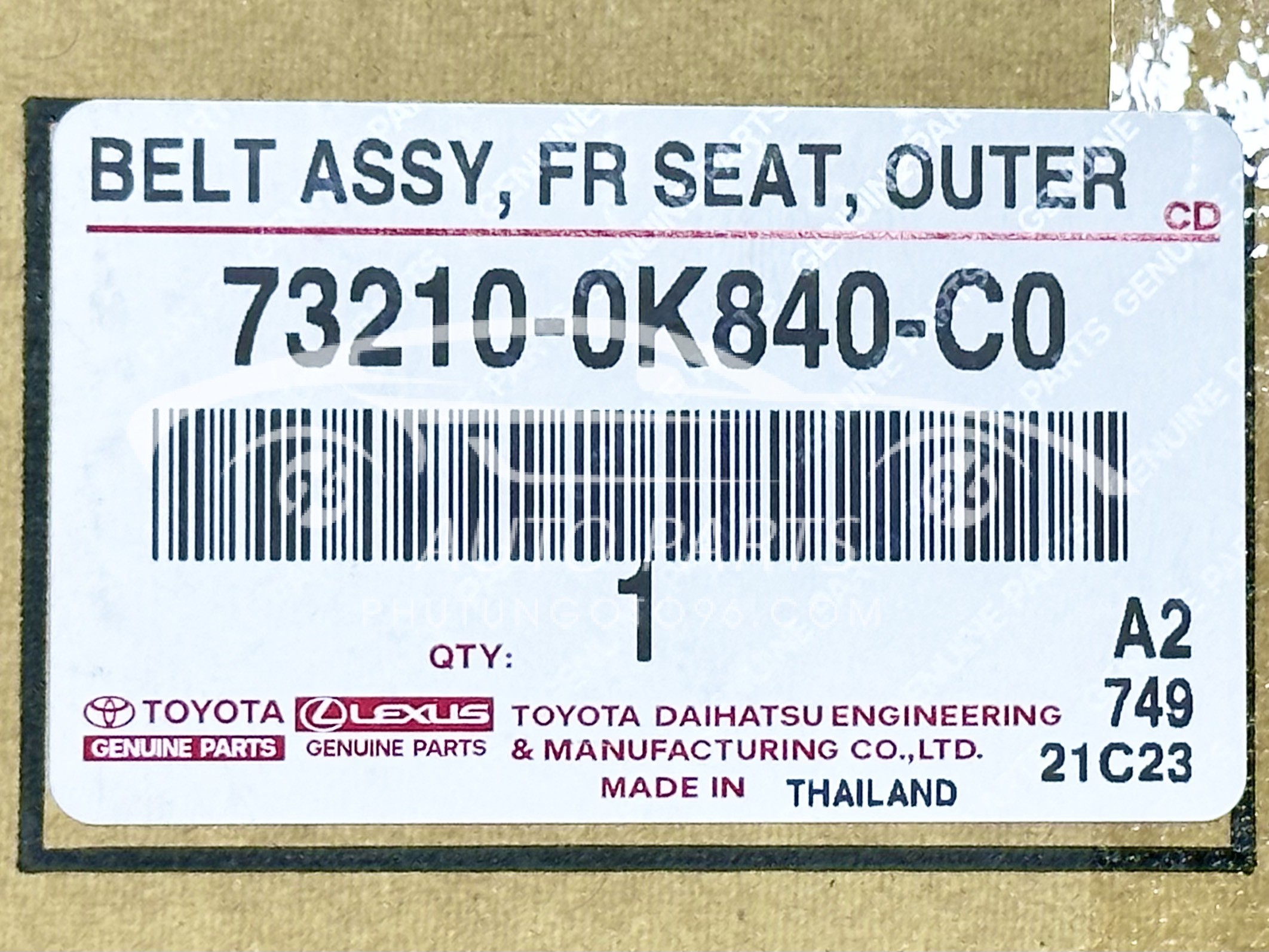 Nếu bạn nhận thấy dây đai an toàn của xe đã có dấu hiệu hư hỏng hoặc không còn chắc chắn, hãy thay thế ngay sản phẩm 73210-0K840-C0 (732100K840C0) để bảo vệ bạn và gia đình trong suốt những chuyến đi tiếp theo.