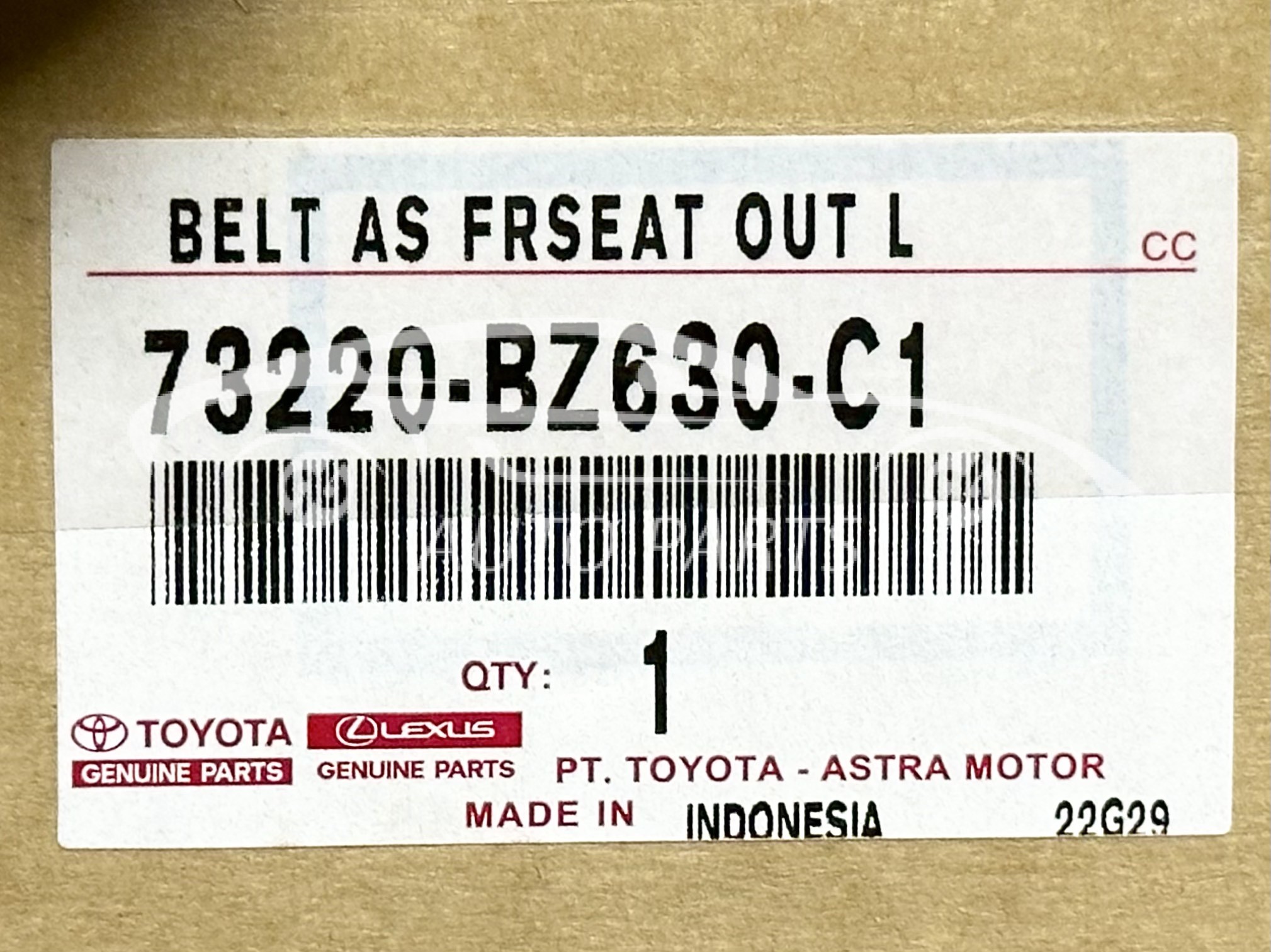 73220-BZ630-C1 Dây đai an toàn Veloz Cross 2021 LH