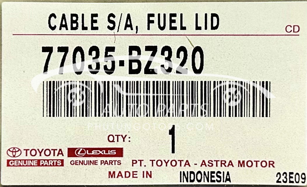 Cáp mở nắp bình xăng Toyota Veloz Cross chính hãng, mã sản phẩm 77035-BZ320, 77035BZ320, là phụ tùng quan trọng trong hệ thống nhiên liệu của xe, đảm bảo việc mở nắp bình xăng diễn ra thuận lợi và an toàn.Công dụng của cáp mở nắp bình xăng