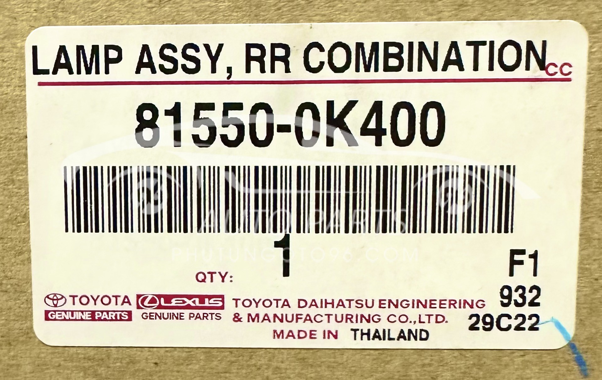 Đèn hậu ngoài Fortuner 2015 mã 81550-0K400 (815500K400) là phụ tùng chính hãng dành cho xe Toyota Fortuner sản xuất trong giai đoạn 2012-2016. Sản phẩm này được thiết kế để thay thế đèn hậu bên phải (RH) nguyên bản, đảm bảo sự tương thích và hoạt động ổn định với xe của bạn.