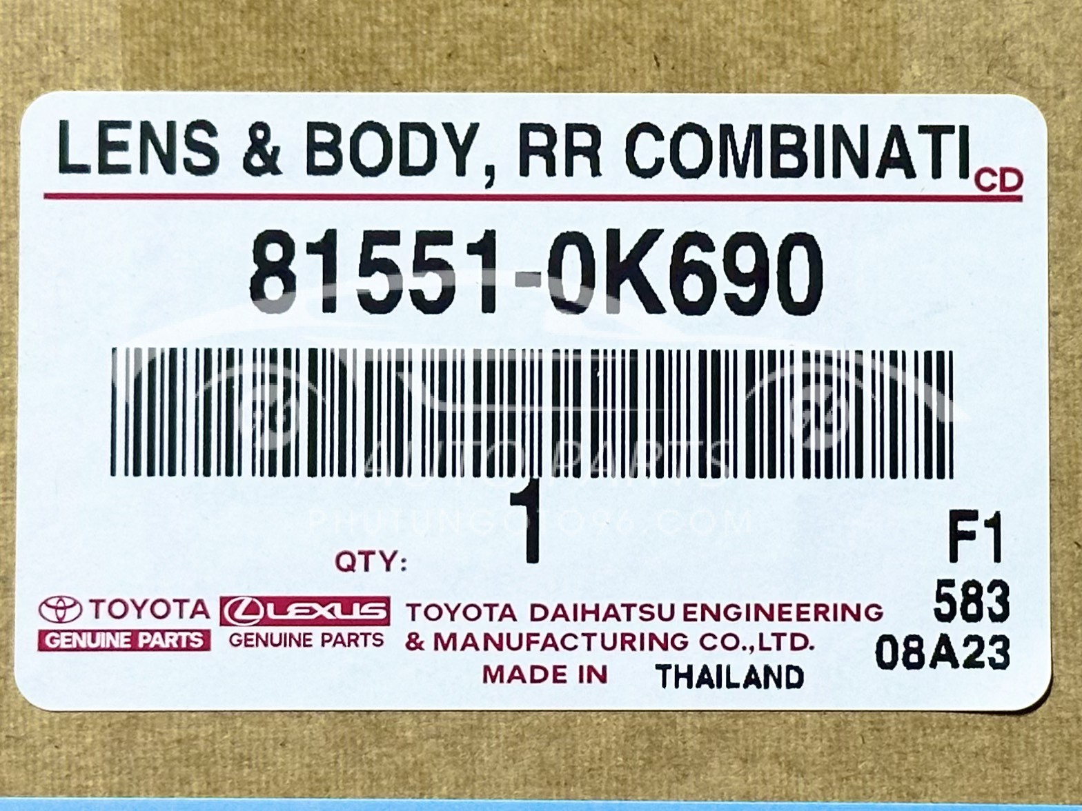 - Chất lượng chính hãng: Đèn hậu 81551-0K690 (815510K690) được sản xuất theo tiêu chuẩn chất lượng của Toyota, giúp bạn yên tâm về độ bền và hiệu suất của sản phẩm.