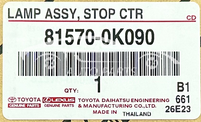 Đèn phanh trên cửa hậu Innova, Fortuner chính hãng - Mã sản phẩm: 815700K090, 81570-0K090 là bộ phận quan trọng để đảm bảo an toàn khi tham gia giao thông. Đèn phanh này giúp các phương tiện phía sau nhận diện tình huống phanh của xe bạn.