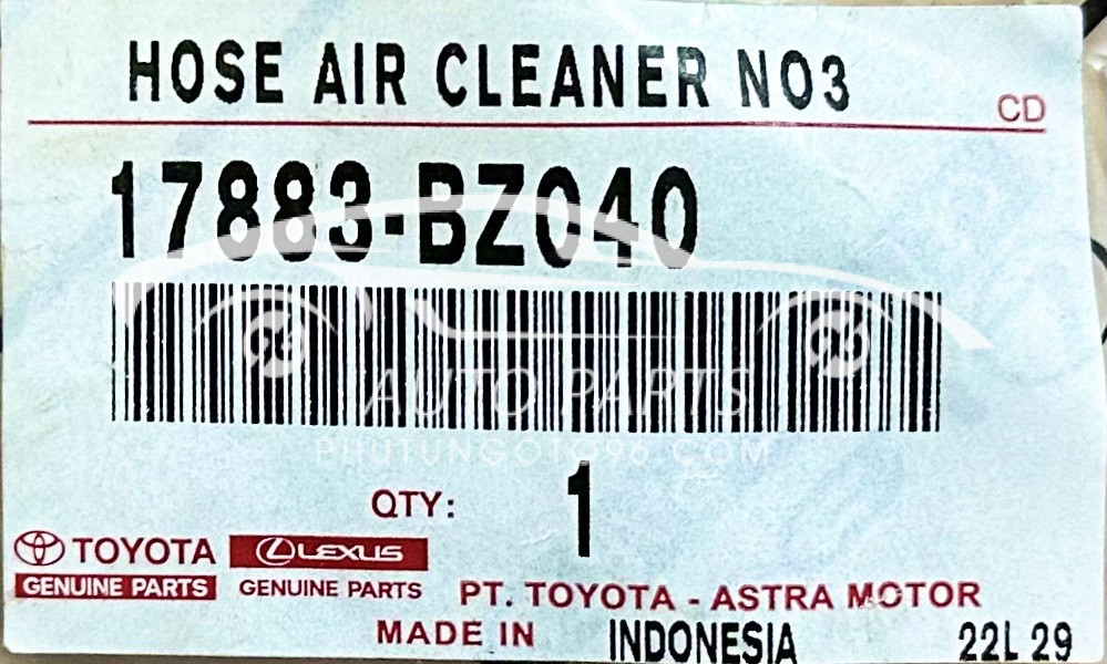 Thông tin mua hàng: Để đảm bảo chất lượng và độ bền, quý khách nên lựa chọn ống gió bầu E chính hãng với mã sản phẩm 17883BZ040 hoặc 17883-BZ040. Sản phẩm hiện có sẵn tại Phụ tùng ô tô 96, đảm bảo nguồn gốc và chất lượng.