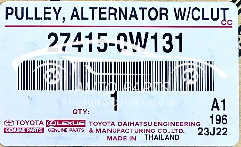 Puly máy phát Toyota Camry, Innova, Fortuner, Land Cruiser Prado máy 2TR (Mã: 27415-0W131 / 274150W131) là phụ tùng chính hãng, được lắp trên đầu máy phát điện (alternator), có nhiệm vụ truyền động từ dây curoa để máy phát hoạt động ổn định.