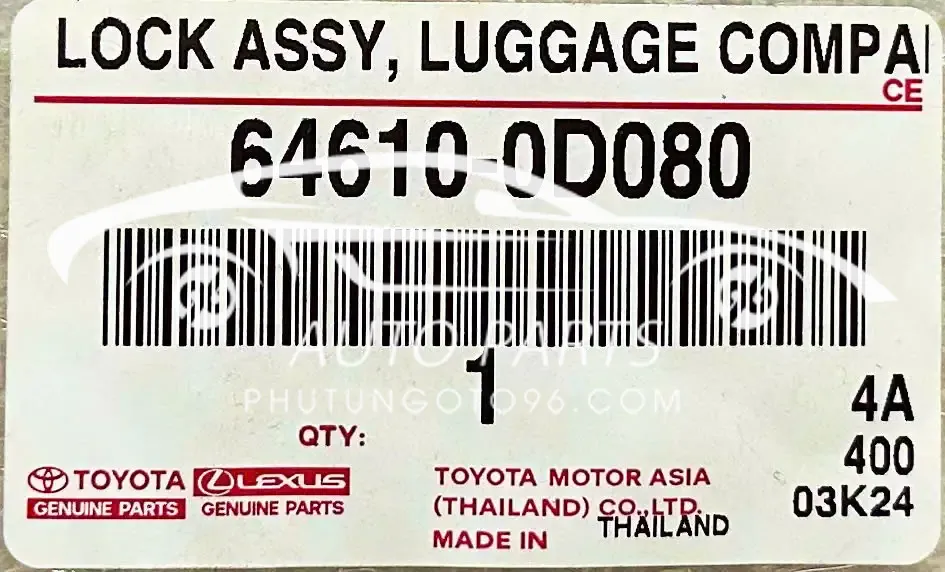 Cơ cấu khóa mã 64610-0D080 / 646100D080 được thiết kế theo tiêu chuẩn Toyota, đảm bảo độ chắc chắn, độ bền cao và hoạt động ổn định trong quá trình sử dụng.